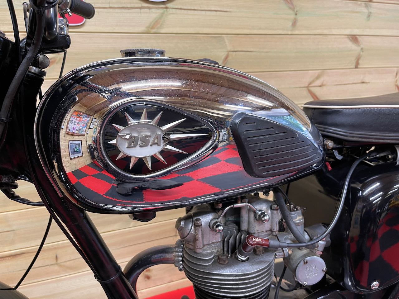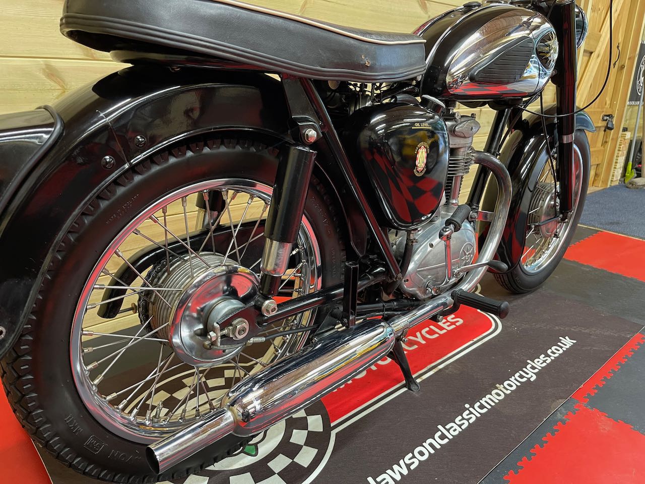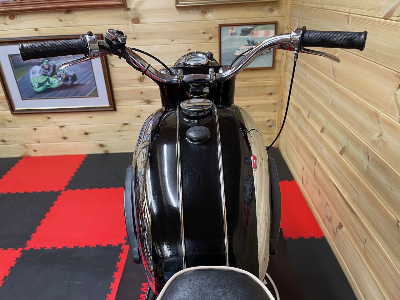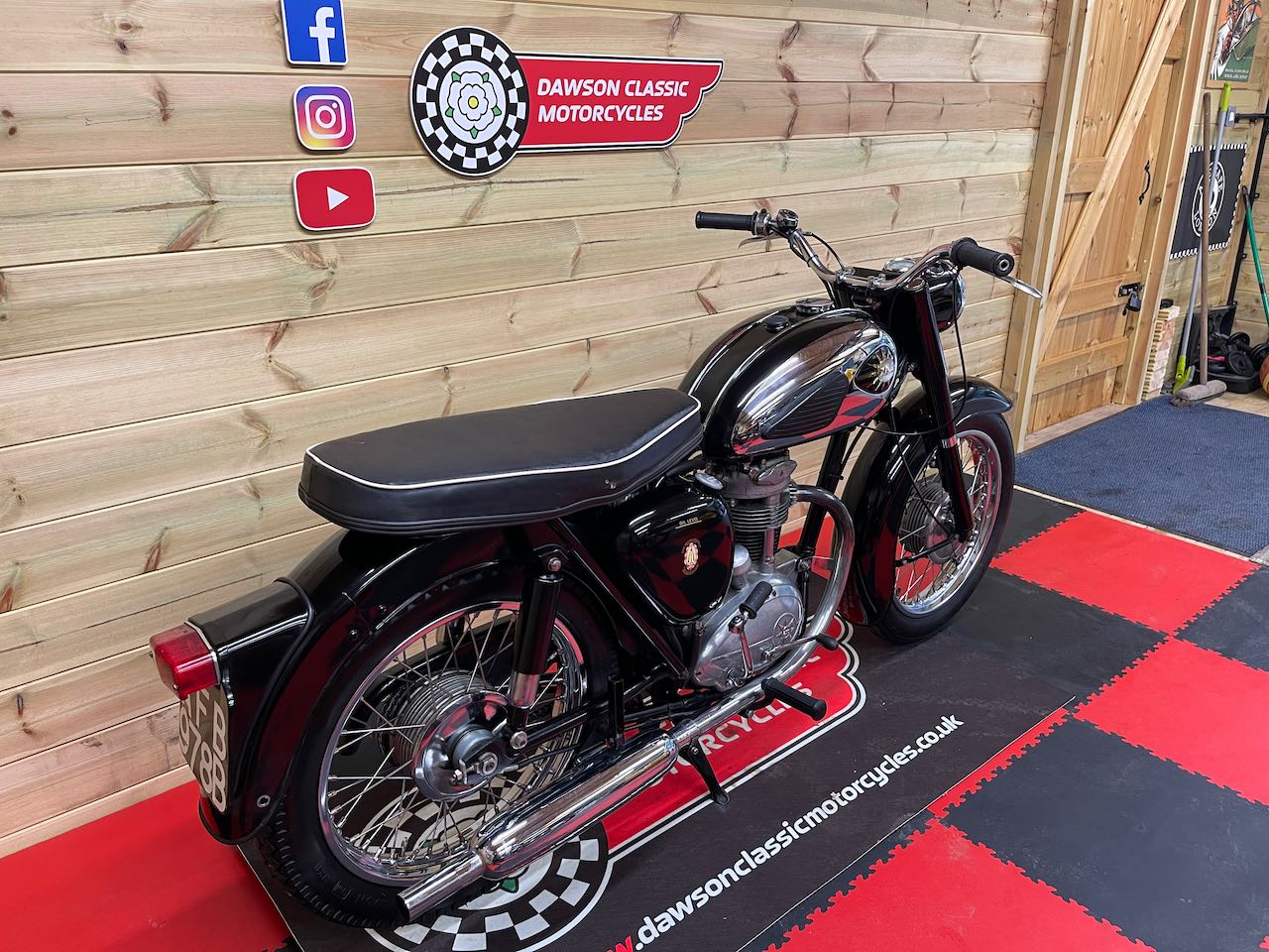 A superb example of the BSA C15 here, an older restoration sporting fresh paintwork, lovely chrome, new stainless rims and spokes and a full engine rebuild around 2014.