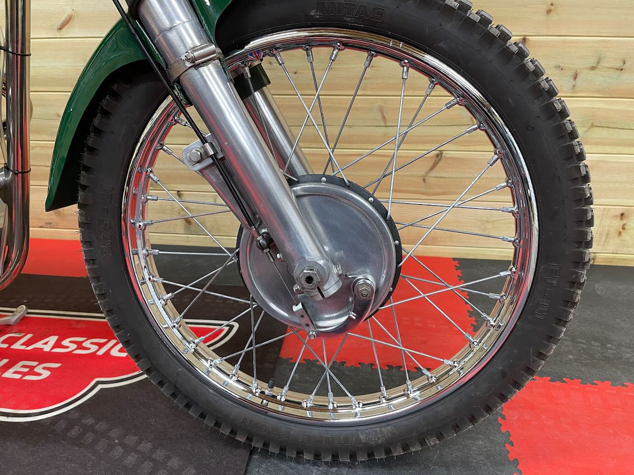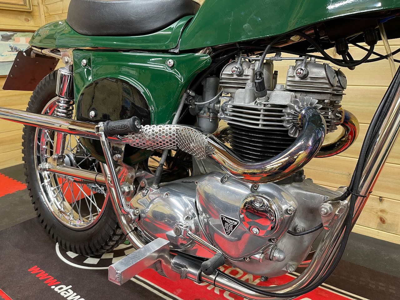 A stunning example of the Metisse Framed Triumph T120, based heavily on the Steve McQueen recreation that Metisse made in 2008. The frame is a genuine 1967 Metisse complete with dating certificate and road registered with an age related plate. The Triumph T120 engine is freshly rebuilt to the specs used in the McQueen Metisse bikes having only covered around 100 miles. The bike is ready to go, having been checked over and serviced as a matter of course ready for her new owner.