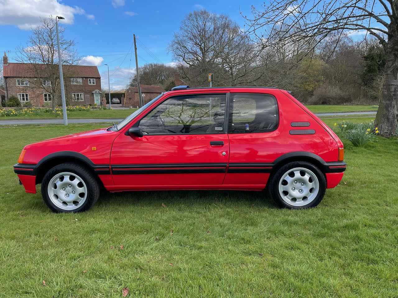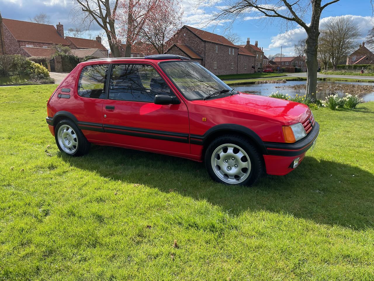 We are pleased to be able to bring you this stunning Peugeot 205 GTI 1.9 full power 130bhp pre cat model, complete with rare factory option power steering! Having teamed up with our friends over at J.Williams Automotive Engineers we have prepared this 80’s icon for her next chapter with an extensive service & re-commision. This includes new rear brake discs pads & calipers, front wishbones, drop links, inner and outer track rod ends & wheel bearings. As well as correctly sized brand new tyres all round fitted to freshly refurbished alloy wheels. The 205 has a nice paperwork file documenting a recent engine rebuild and and rear beam refresh, which we have added to with a new radiator, battery and full and comprehensive service including fluids and filters. The Peugeot has been road tested and checked over to ensure the new owner has the best possible original hot hatch experience!