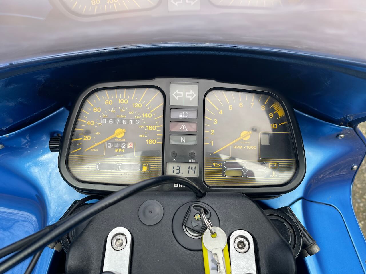 Launched in 1989, the K1 represented BMW’s bold attempt to create a hyper-sports flagship model using its K-Series 980cc four-cylinder engine. The latter had been around since 1983 and for the futuristically styled K1 was up-rated with a 16-valve cylinder head and Bosch electronic fuel injection. For the K1, the K-Series frame was stiffened, the steering geometry altered and BMW’s Paralever rear suspension incorporated, while anti-lock brakes were optional. Despite BMW’s self-imposed horsepower ceiling of 100bhp, Bike magazine’s test K1 recorded a maximum output of 107.9bhp on Motad’s dyno, which was sufficient to propel the aerodynamically efficient ‘Brick’ to a top speed of around 150mph. Arguably more important than the headline speed figures was the manner in which this performance was delivered, Bike‘s tester Phil West being highly impressed by the way in which the wind-tunnel developed fairing made 120mph seem like 60, and at a mere 7,500 rpm as well. Produced for only four years, the K1 is already one of the more collectible of post-war BMWs.