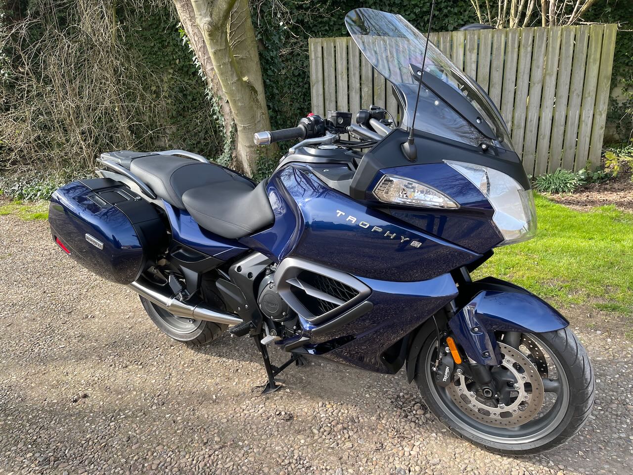 We are pleased to be able to offer you this outstanding example of the Triumph Trophy SE 1200 from 2014. It has all the extras built in sat nav, heated seats and grips, electronic suspension, motorised screen, multimedia stereo system, ABS, Cruise control and many more. The service history is up there with some of the best we have seen, being fully documented and recorded by the previous owner it supports the recorded milage of 57,000. With lots of tyre life left and a fresh 12 month MOT she is ready for the next adventure.
