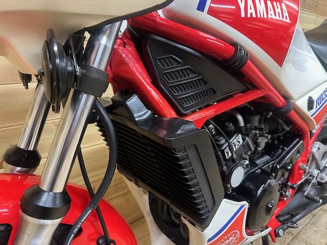 After only a couple of years in production the original RD350LC was superseded in 1982 by the RD350 LCII, a model better know by the ‘YPVS’ acronym standing for ‘Yamaha Power Valve System’. Developed on the firm’s Grand Prix bikes, the electrically operated power valve varied the effective exhaust port height according to engine revs, enabling Yamaha to tune the engine for increased top-end power while maintaining mid-range tractability. Keeping pace with the times, Yamaha slotted this heavily revised engine into a new frame equipped with linkage-operated mono-shock rear suspension, while the old rear drum brake was replaced by a disc. After little more than a year the LCII was dropped, being replaced by the fully faired RD350F and naked RD350N models.