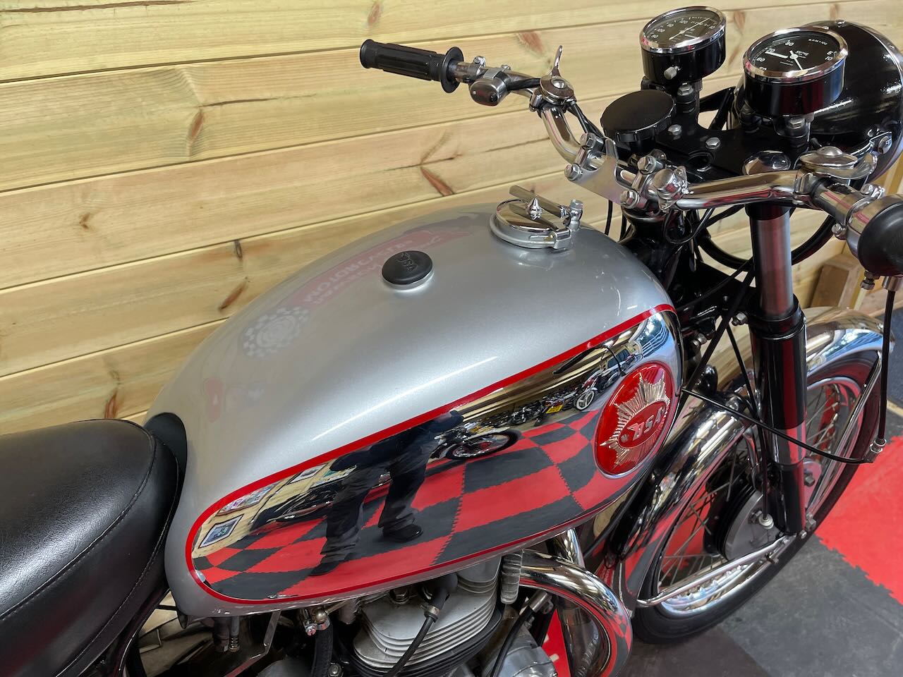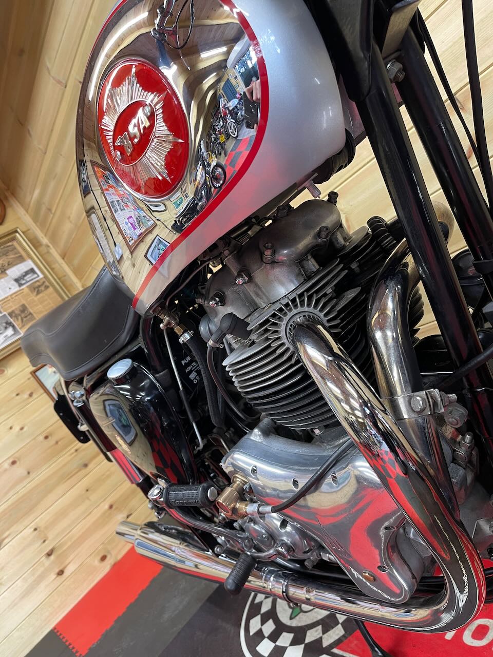 We are pleased to be able to bring this wonderful example of a BSA Rocket Goldstar, although she is a replica there is no mistaking the large number of Goldstar parts that have made their way onto the BSA A10. You will notice the rear set footrests, full front end setup with both brake drums being of the 3 finned type. Although there is not much in the way of paperwork the bike was created by the previous owner over the last 20 years as a full restoration, covering only 925 miles thereafter.