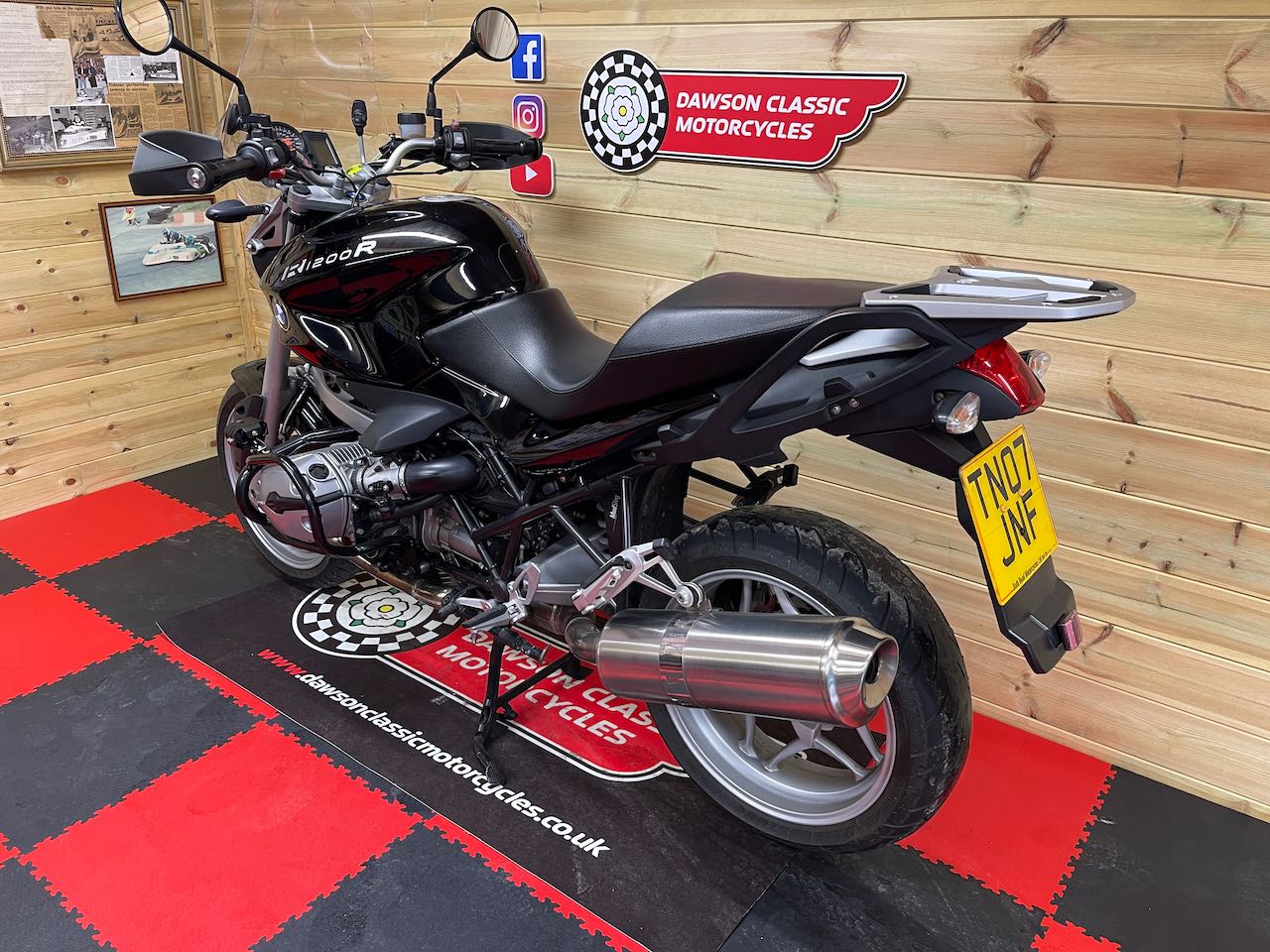 Here we have an excellent condition 2007 BMW R1200R with full BMW luggage pack, hand guards, heated grips, crash bars, running lights and extended rear mud guard. As you can see from the pictures the bike is a credit to her previous owners sporting a true BMW like milage of 43,800 miles and still looks exceptional for a bike that has been used for her true purpose. A full book of 9 service stamps until 2019 at 42,770 miles, a full 12 months MOT will be included as well as UK mainland delivery.