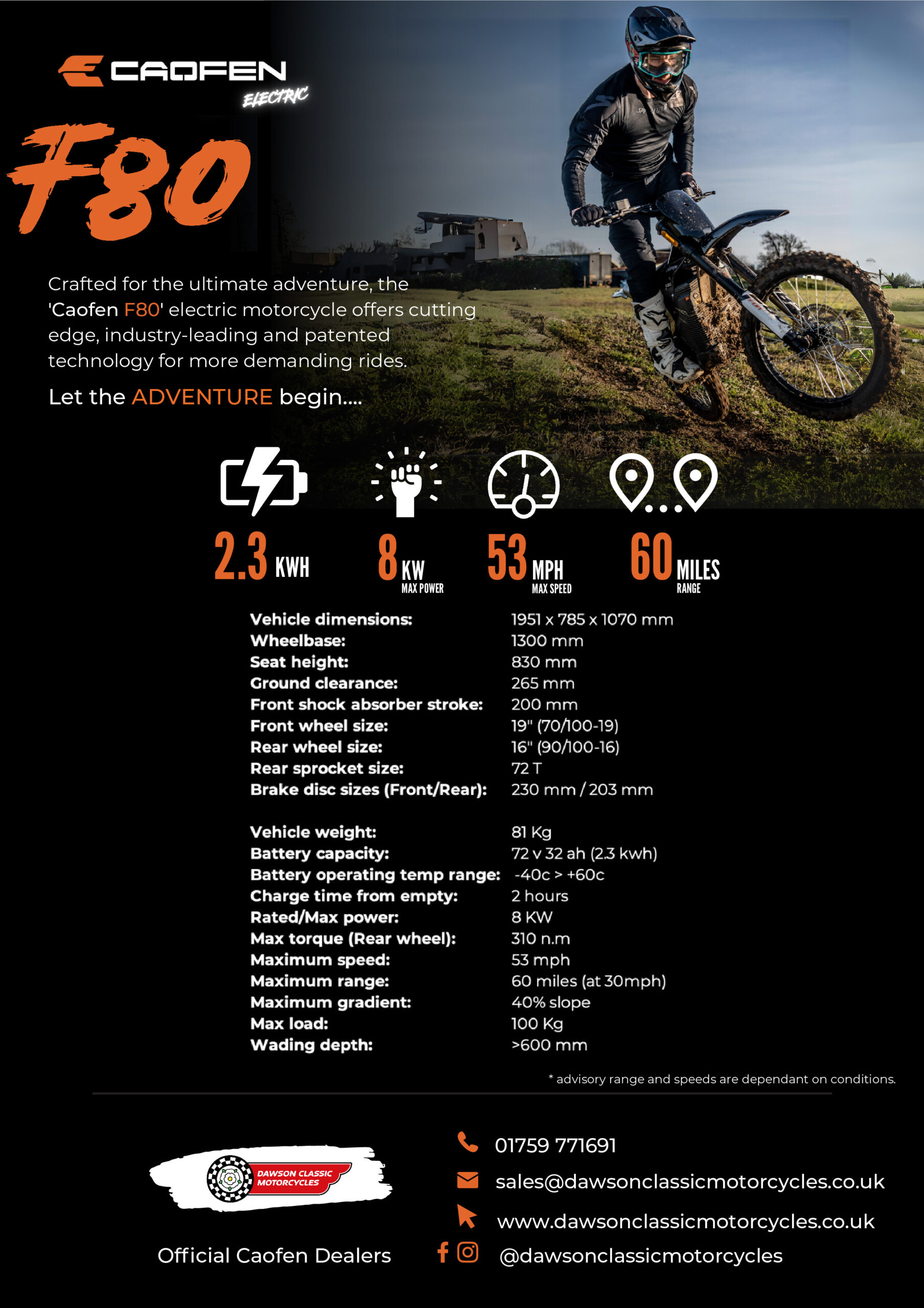 Revolutionize your off-road adventures with the Caofen F80, an electric motorbike that combines cutting-edge technology, eco-friendliness, and superior performance. Say goodbye to noise pollution and embrace a new era of exploration with zero emissions. Let’s delve into what makes the Caofen F80 the ultimate choice for thrill-seekers and eco-conscious riders.