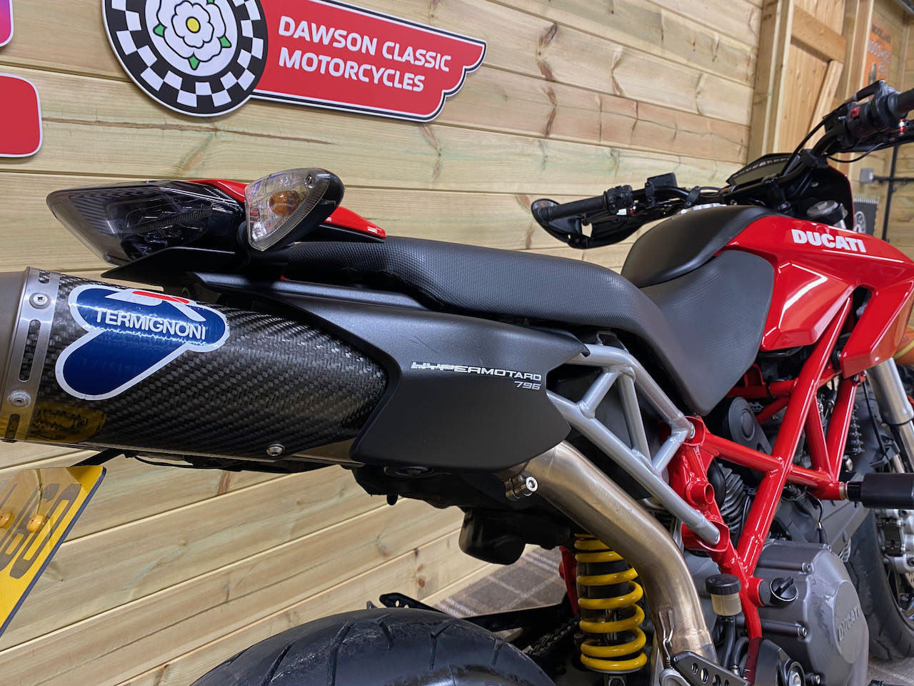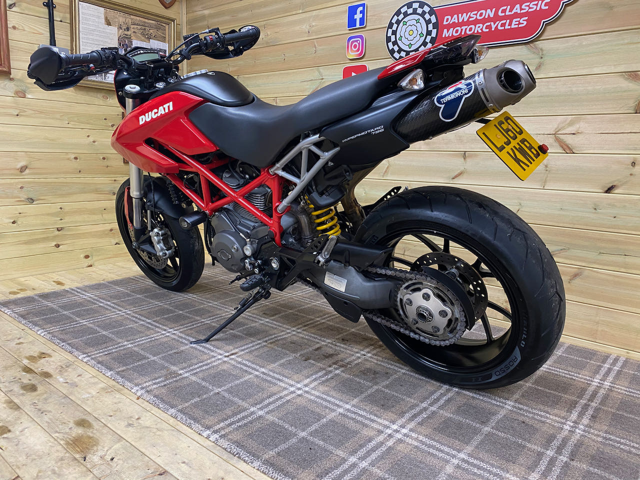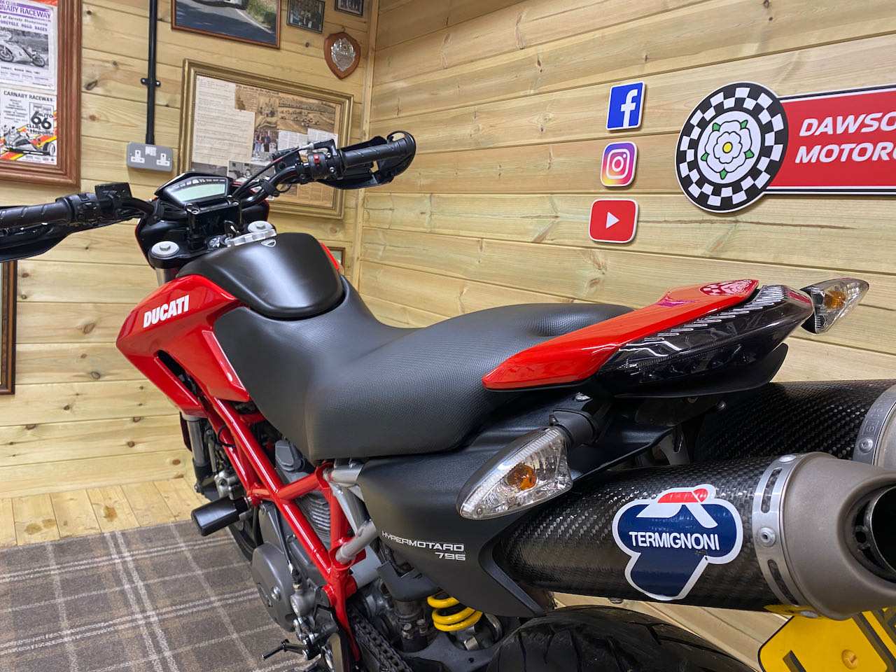 We are excited to offer this gorgeous Ducati Hypermotard for sale, with some tasty extras like the Termignoni exhausts including de-cat lower section! The Hypermotard comes with a full 12 month MOT and a brand new rear tyre and sports a good service history with all the ducati books and paperwork present including both keys. Ducati’s 803cc Hypermotard 796 is a stormer of a machine. It’s 12kg lighter and its seat is 20mm lower than the Hypermotard 1100, which makes it easier to ride and in the real world, and every bit as fast from A to B!