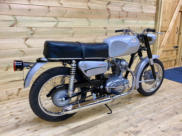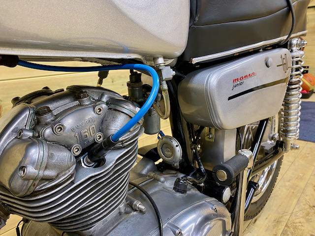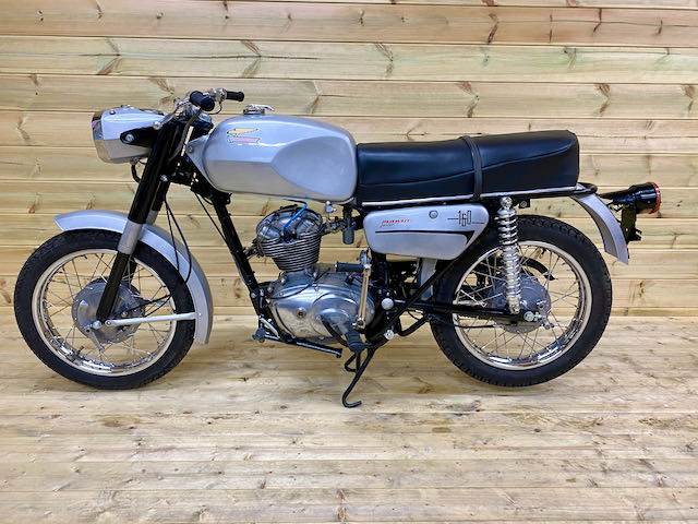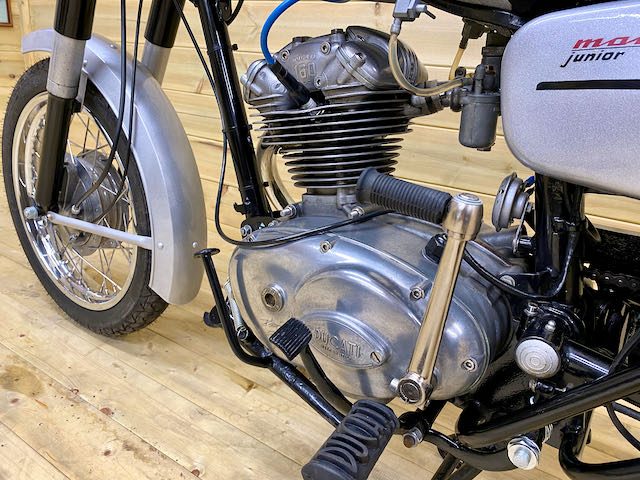 THERE is only one thing like a Ducati—another Ducati. These little Italian overhead-camshaft bikes have an appearance and performance which is entirely their own. A potent-looking, revvable and willing cammy engine unit combines gracefully with a taut, race-bred frame and front fork which give faultless handling. Latest of the stable, the touring 160 Monza Junior, is no exception. If anything it is one of the pleasantest Ducatis ever. The sit-up riding position and the large, well-padded dual seat bring this machine out of the traditional Ducati rut of spartan comfort. This is a great example and will require uk registration. Ducati owners club dating certificate and original Ducati service manual are supplied with the bike.