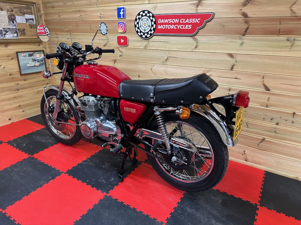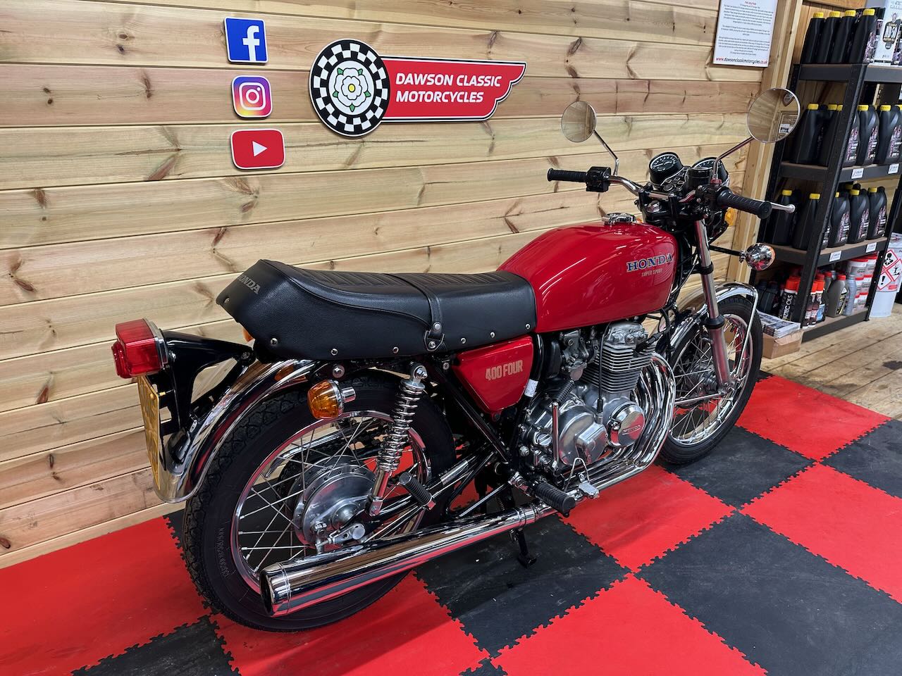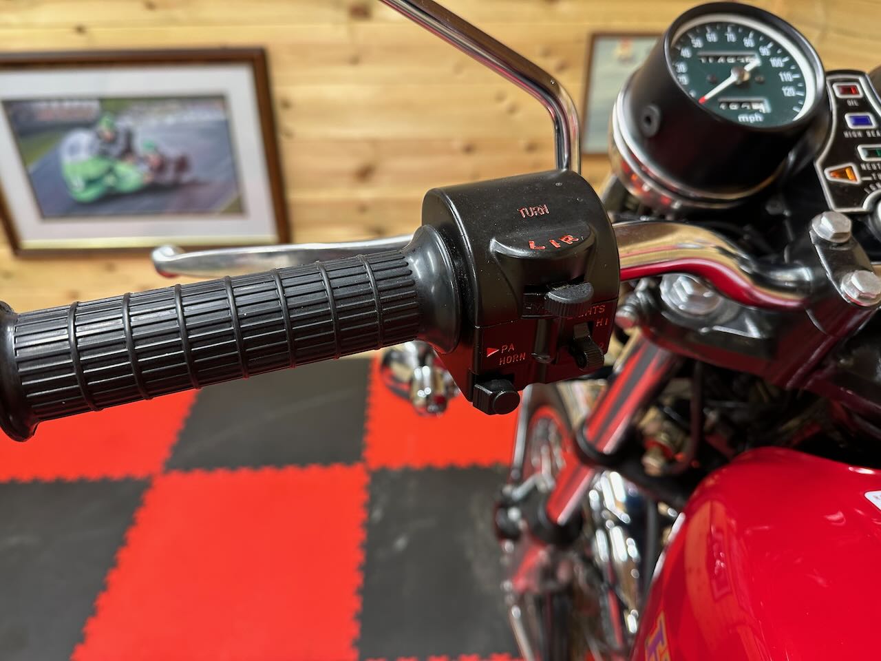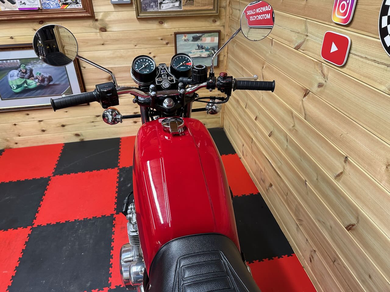 Absolutely gorgeous example of Honda’s 1976 400 four in red. The pictures and video speak for themselves, lots of nos parts and work carried out with plenty of receipts, including recent engine overhaul. If you want any further info feel free to give us a call.