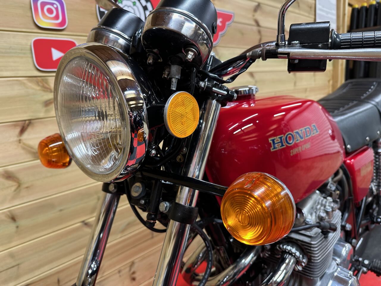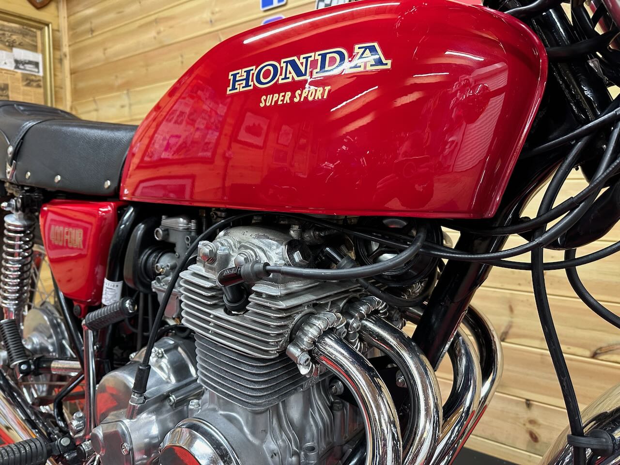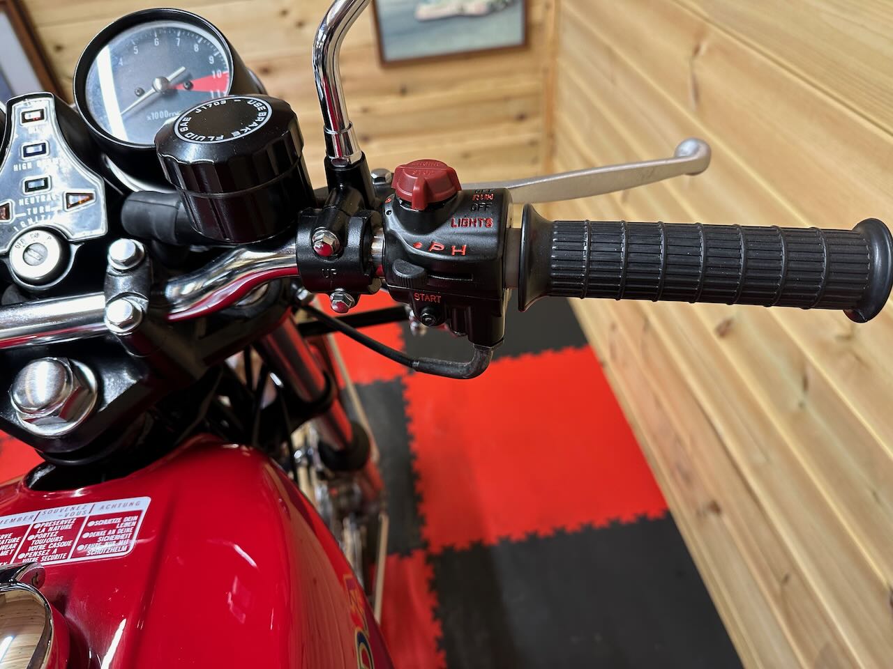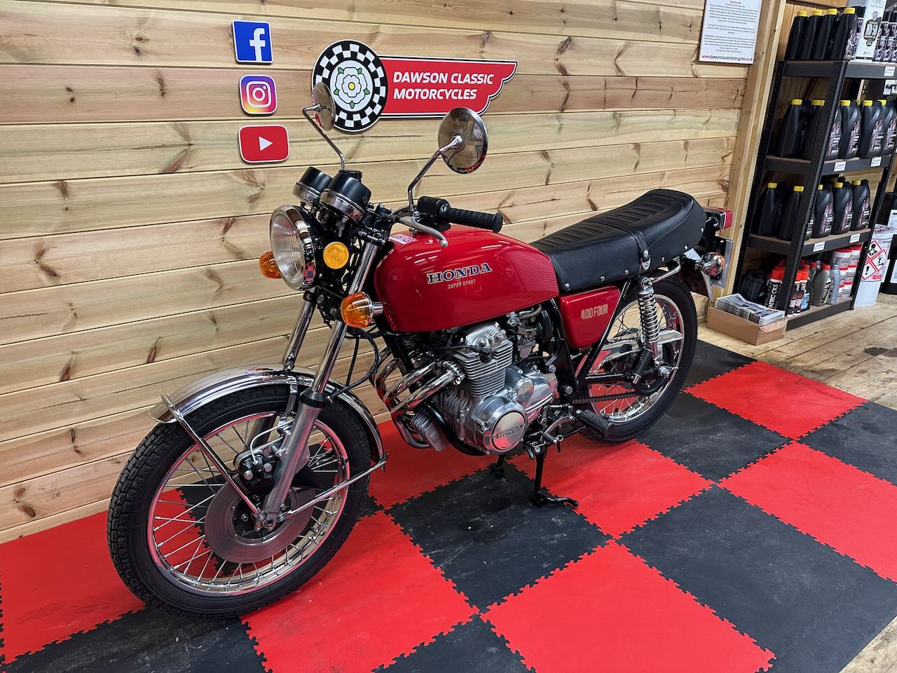 Absolutely gorgeous example of Honda’s 1976 400 four in red. The pictures and video speak for themselves, lots of nos parts and work carried out with plenty of receipts, including recent engine overhaul. If you want any further info feel free to give us a call.