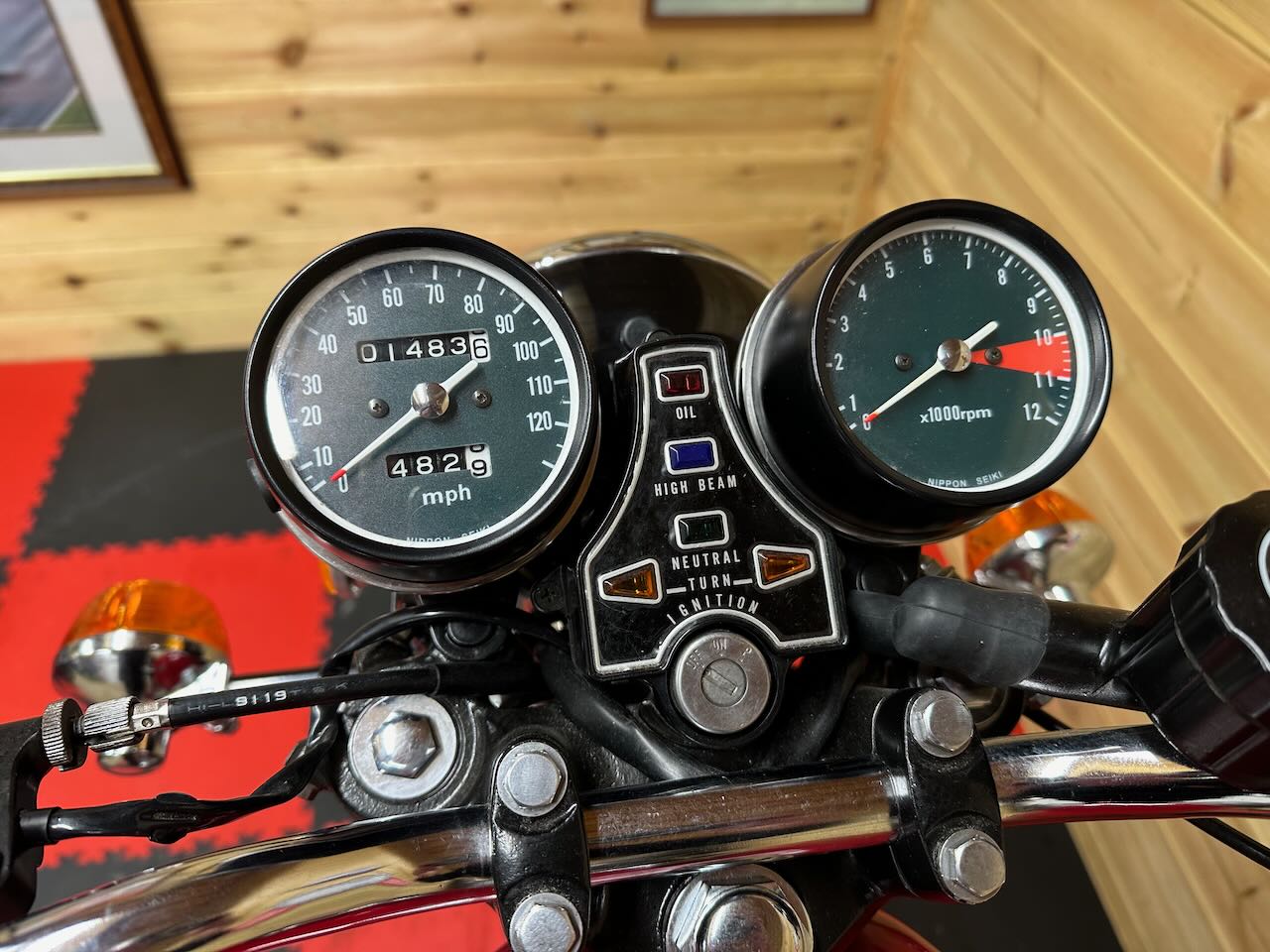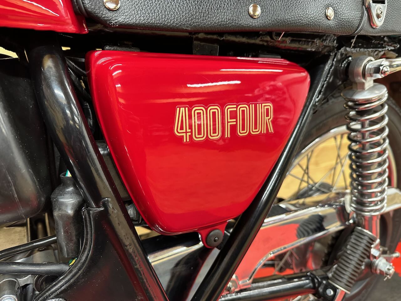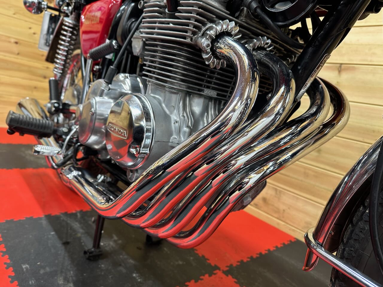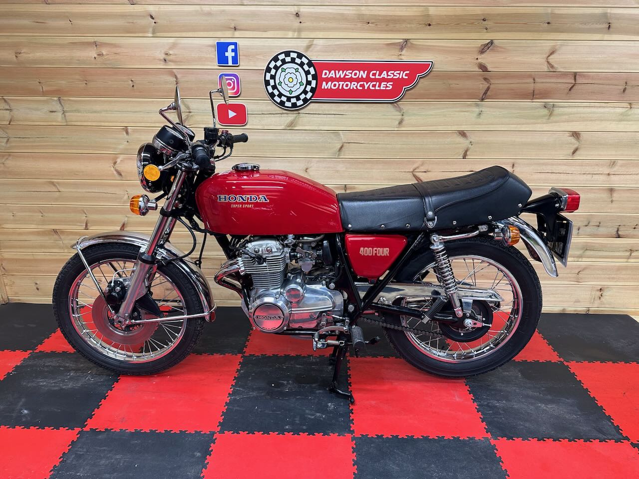 Absolutely gorgeous example of Honda’s 1976 400 four in red. The pictures and video speak for themselves, lots of nos parts and work carried out with plenty of receipts, including recent engine overhaul. If you want any further info feel free to give us a call.
