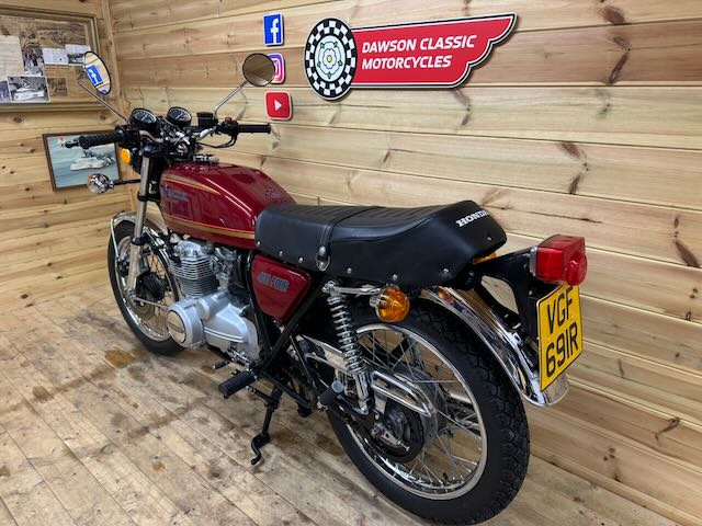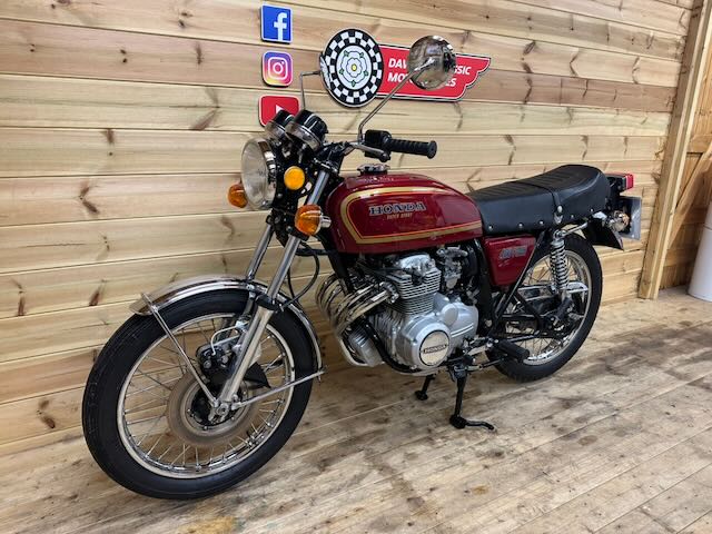 Absolutely gorgeous example of Honda’s 1977 400 four in maroon. Great light weight classic easy to manoeuvre with the benefit of an electric start! The pictures and video speak for themselves, lots of nos parts and work carried out, including engine overhaul. If you want any further info feel free to give us a call.