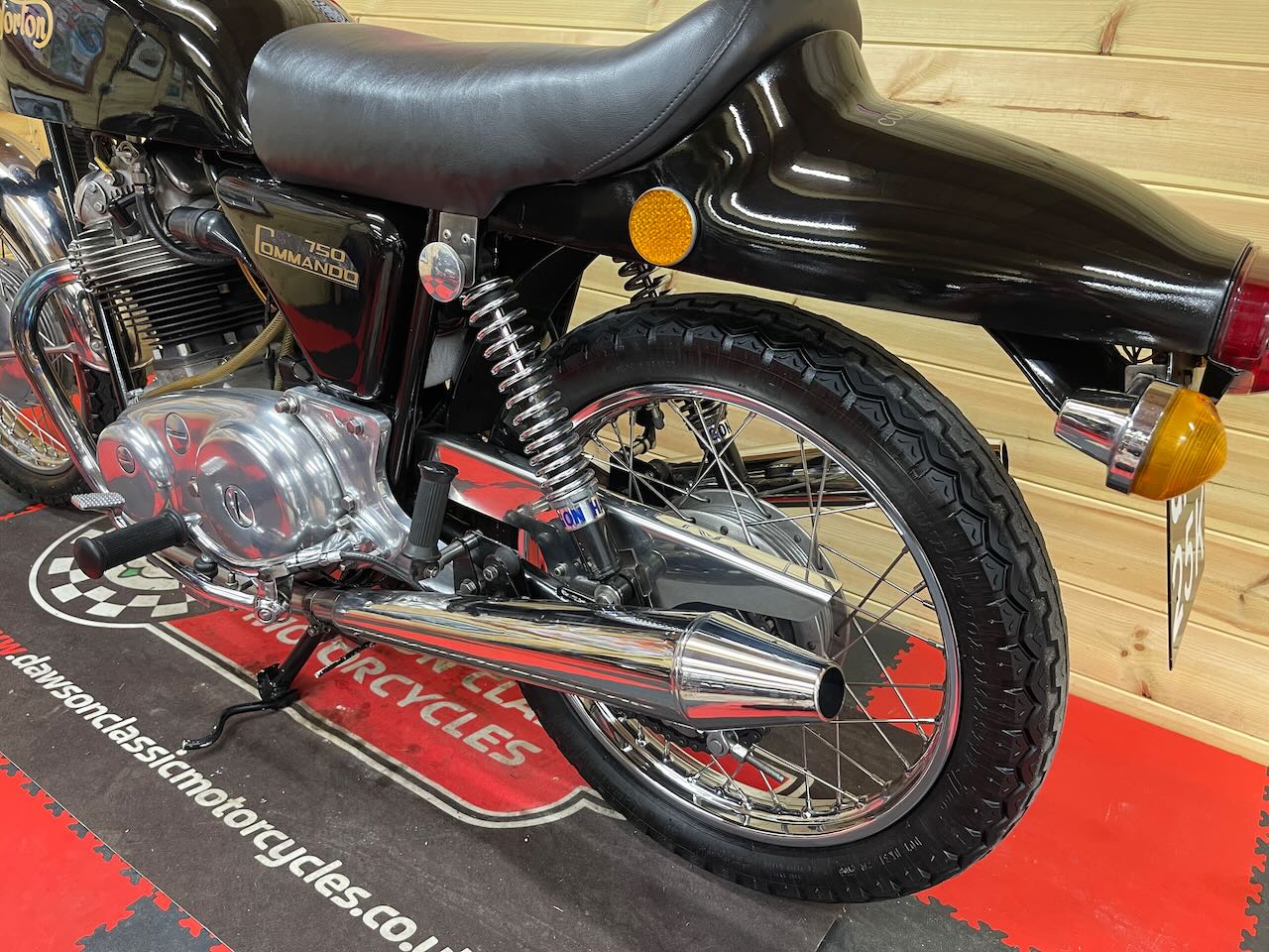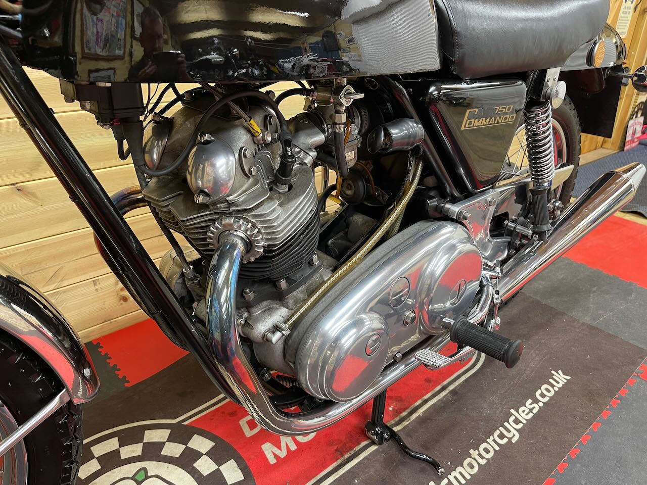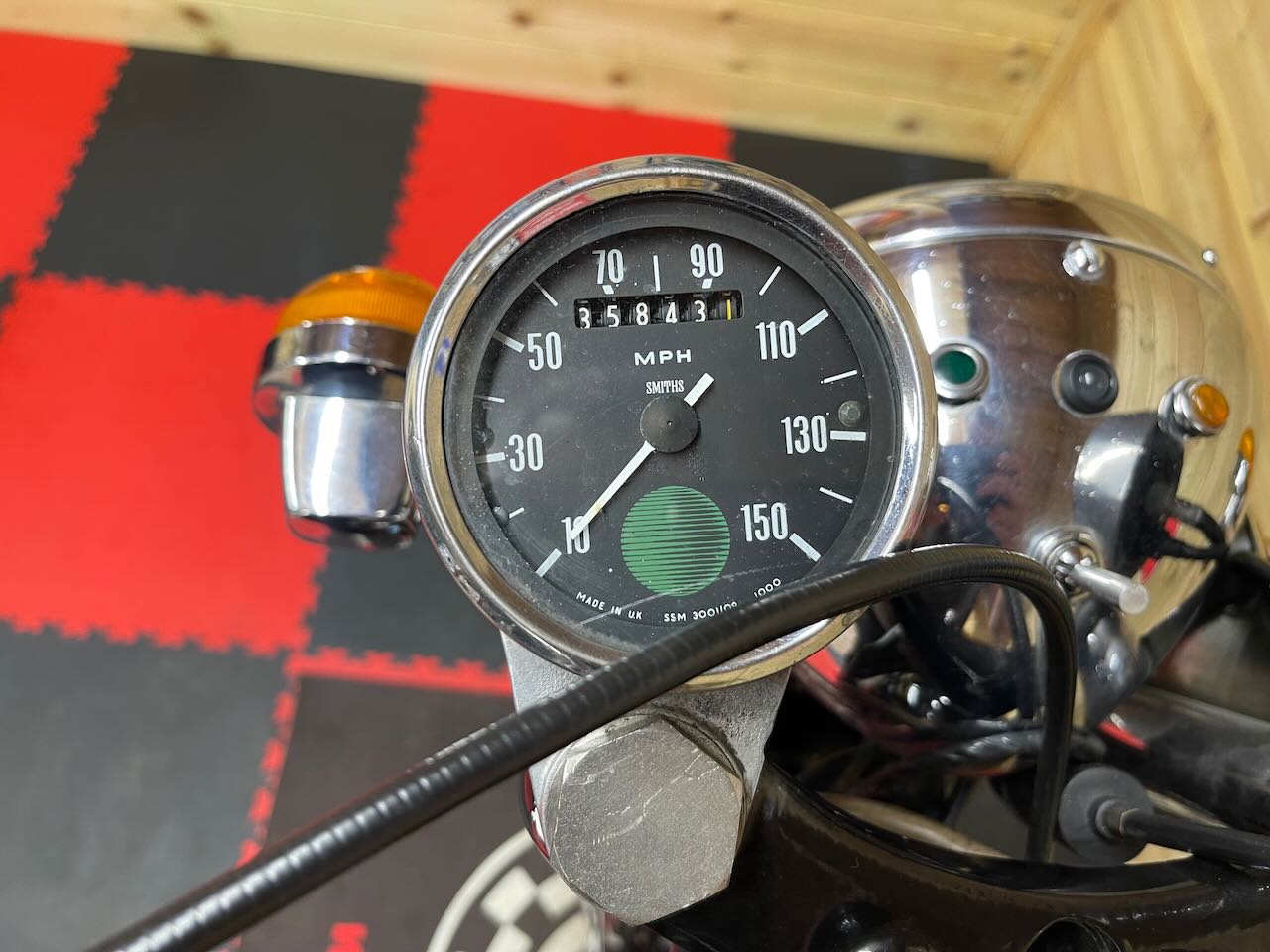 A great example of Norton’s ‘fastback’ Commando 750. Having just had an oil service the Norton is ready for the summer months, this Commando sports some nice upgrades – remote oil filter, anti drain valve, stainless spokes, electronic ignition, single Mikuni carb & additional isolastic exhaust mounts from the 850. There is a comprehensive file of paperwork including various invoices from 2008 detailing an engine rebuild.