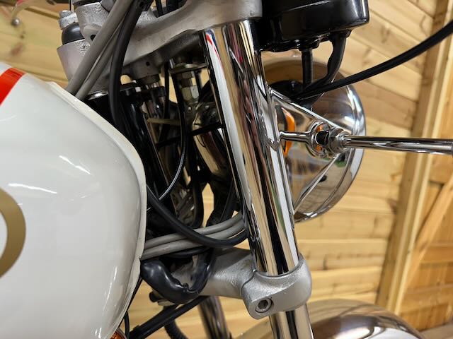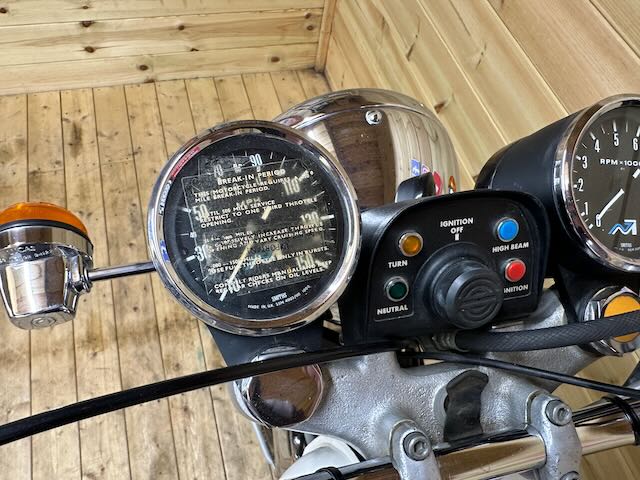 The previous owner contacted Norton at Shenstone, and arranged to purchase this Mark III direct from the factory, where he collected it in person. The bike had been uncrated by Norton, assembled, and given a PDI. Transported to the vendor’s home, the Commando was drained of hydraulic fluid and petrol, before being placed on display at his home in climate-controlled conditions, where it has remained ever since. Should a new owner wish to use the machine, it will require fresh fluids, basic safety checks, and commissioning/re-commissioning prior to use.