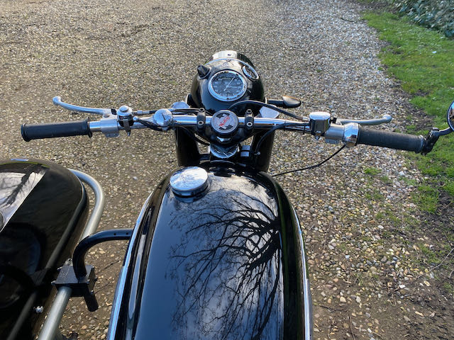 We are pleased to offer this 60’s style sidecar combination, the bike is mechanically sound and has been in the same ownership for the last 9 years. It has some nice period touches and is a lovely runner as can be seen in the video below. The 597cc featherbed framed Model 99 Dominator was introduced in september 1955, as a larger capacity version alongside the 500 cc Model 88 version. Due to the increased engine capacity, the 99 had an increased power output, partly due also to a higher compression ratio possible with the alloy head introduced a year earlier. Full width alloy hubs with improved brakes had also been introduced a year earlier, preparatory for the capacity increase from 500 cc to 600 cc making this the ideal Dominator for sidecar duties!
