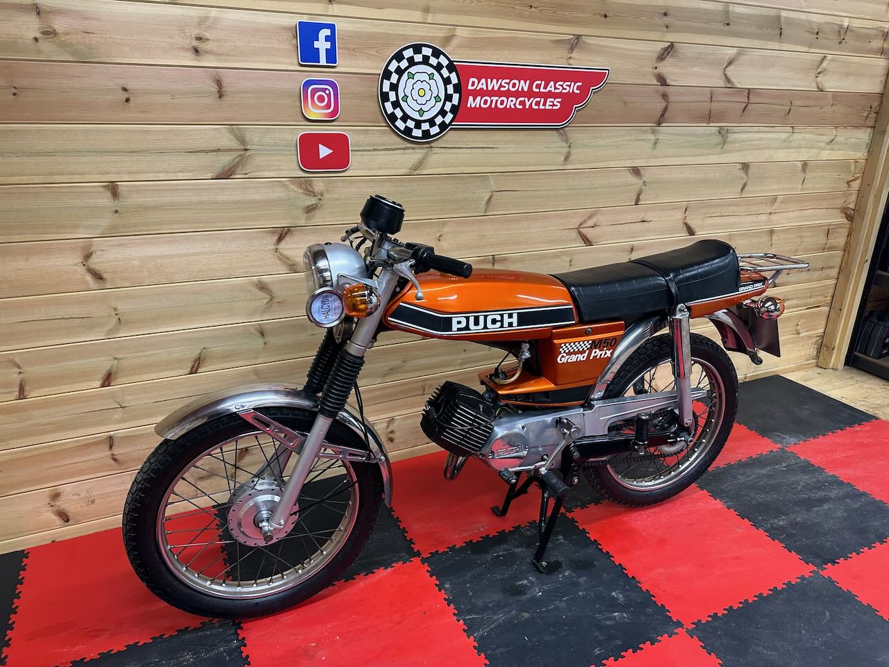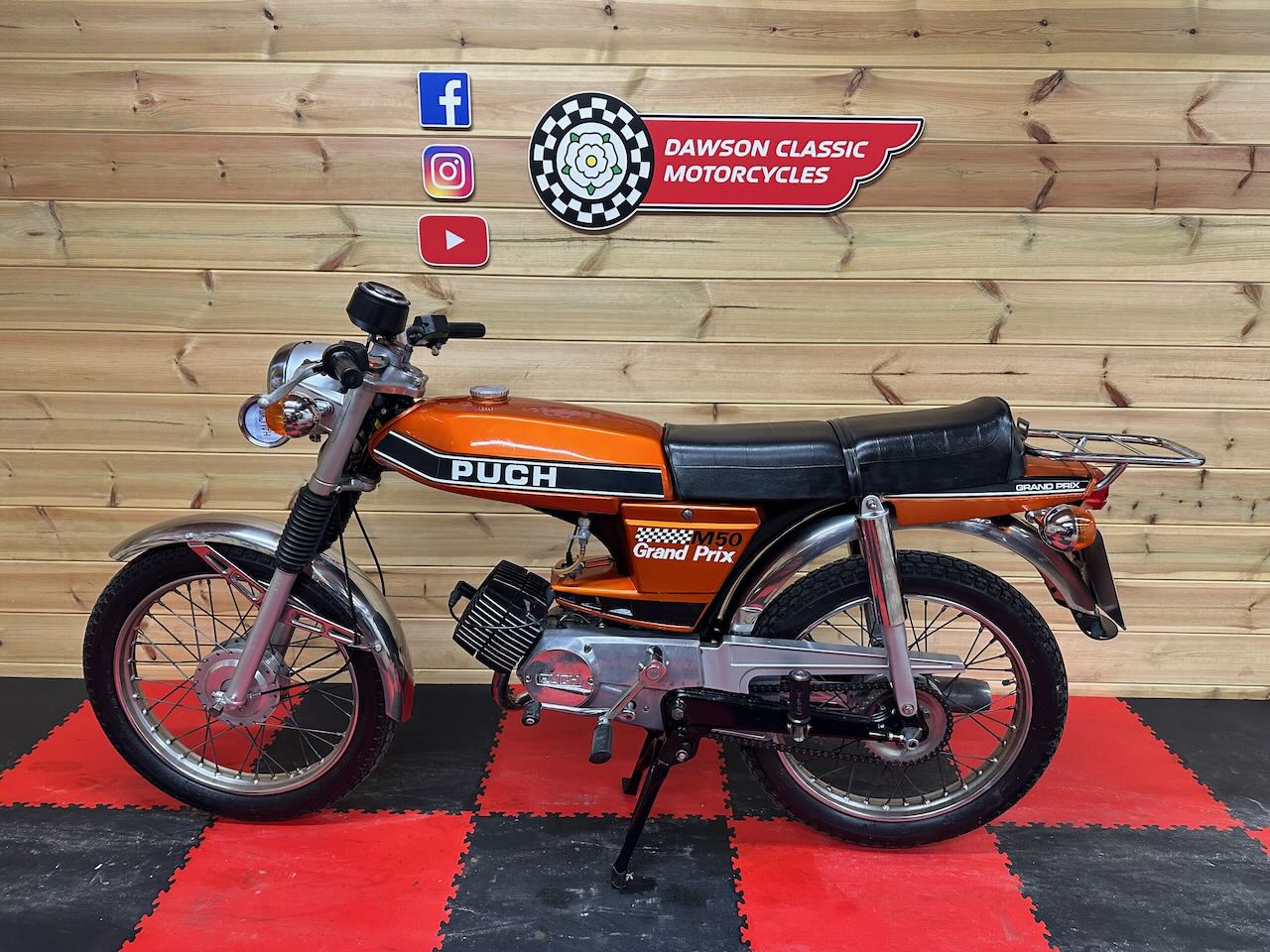 This M50 Grand Prix represents the ultimate performance Puch and the pinnacle of ’70s sub-50cc performance. It is in great original condition and comes with it’s original dealer books etc.