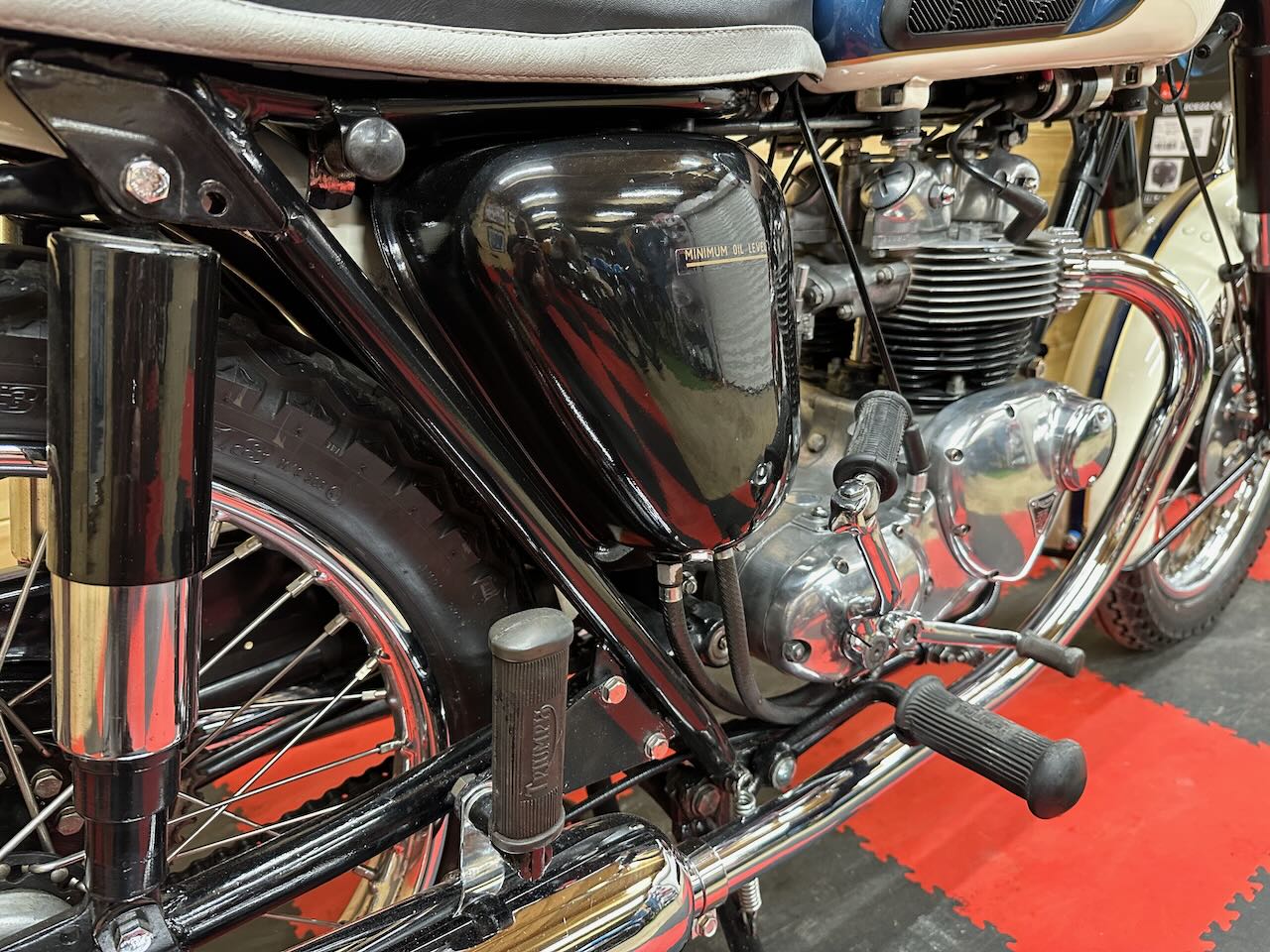 This is possibly one of the best examples of Triumph’s baby Bonneville the 21 or 3TA having ditched the bathtub looks for the Bonny rep look in 1966 this is the one to have! Excellent starter with a low compression motor and only a 350cc twin to turn over, paired with its light weight easy maneuverability it is the perfect Triumph for the shorter/older rider! Take a look at the pictures & video it is possibly even cleaner in person.
