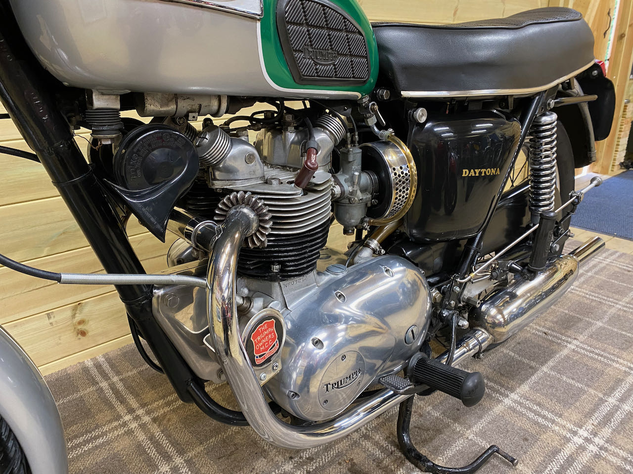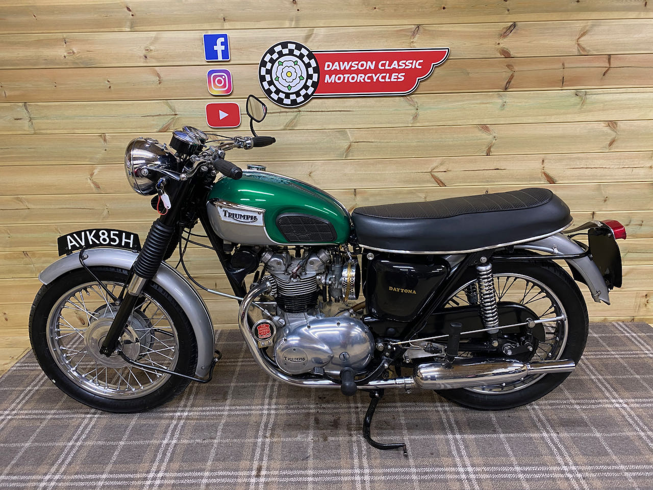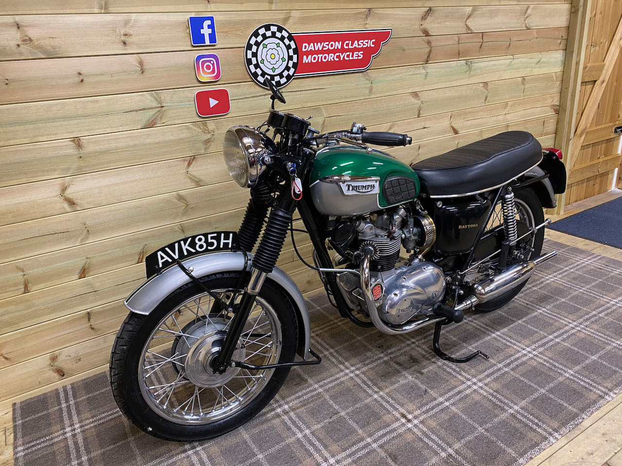 Absolutely Gorgeous Triumph Daytona 500 Twin, possibly the best 500 to leave the factory. This one has really been cherished by the previous owner for over 20 years! Just been fitted with new tyres front and back and ready for her next chapter, although the pictures look amazing this one really has to be seen to be appreciated. All in all a lovely usable classic! Please give us a call for further information or to arrange Free UK mainland delivery or a viewing.