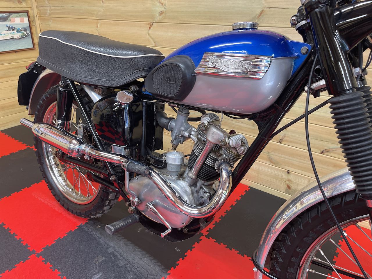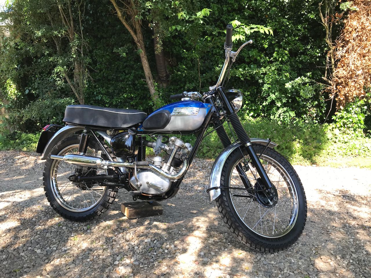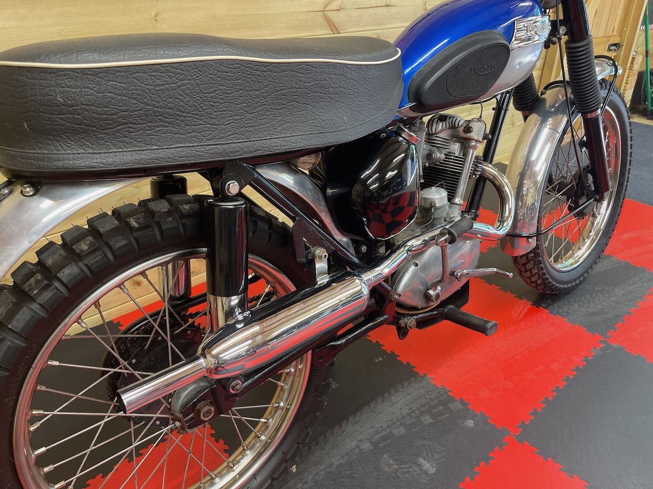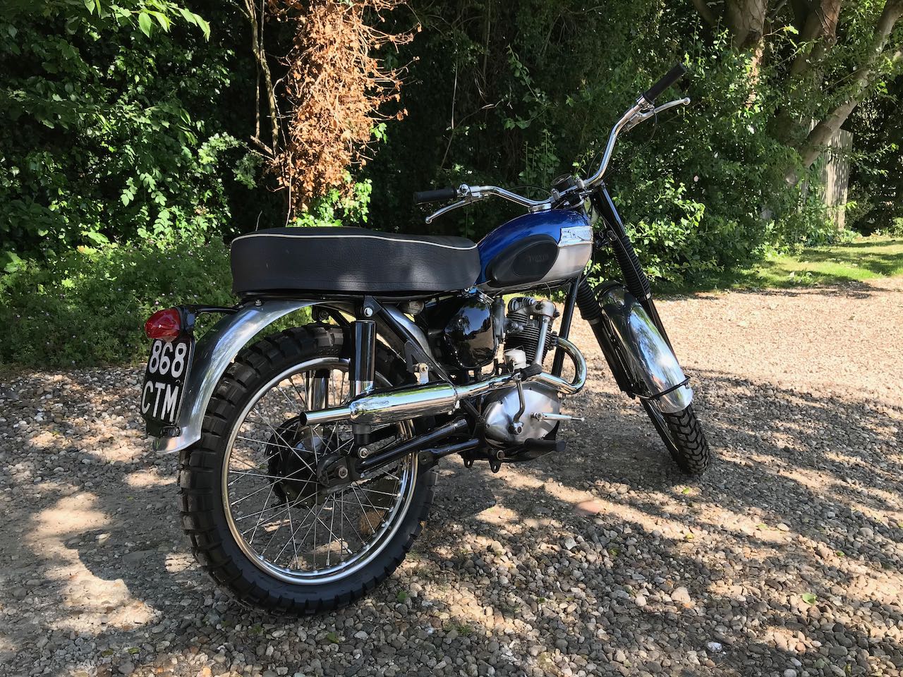 Here we have a really nice little Triumph Tiger cub all kitted out in scrambler gear. Ready for a green or country lane near you!