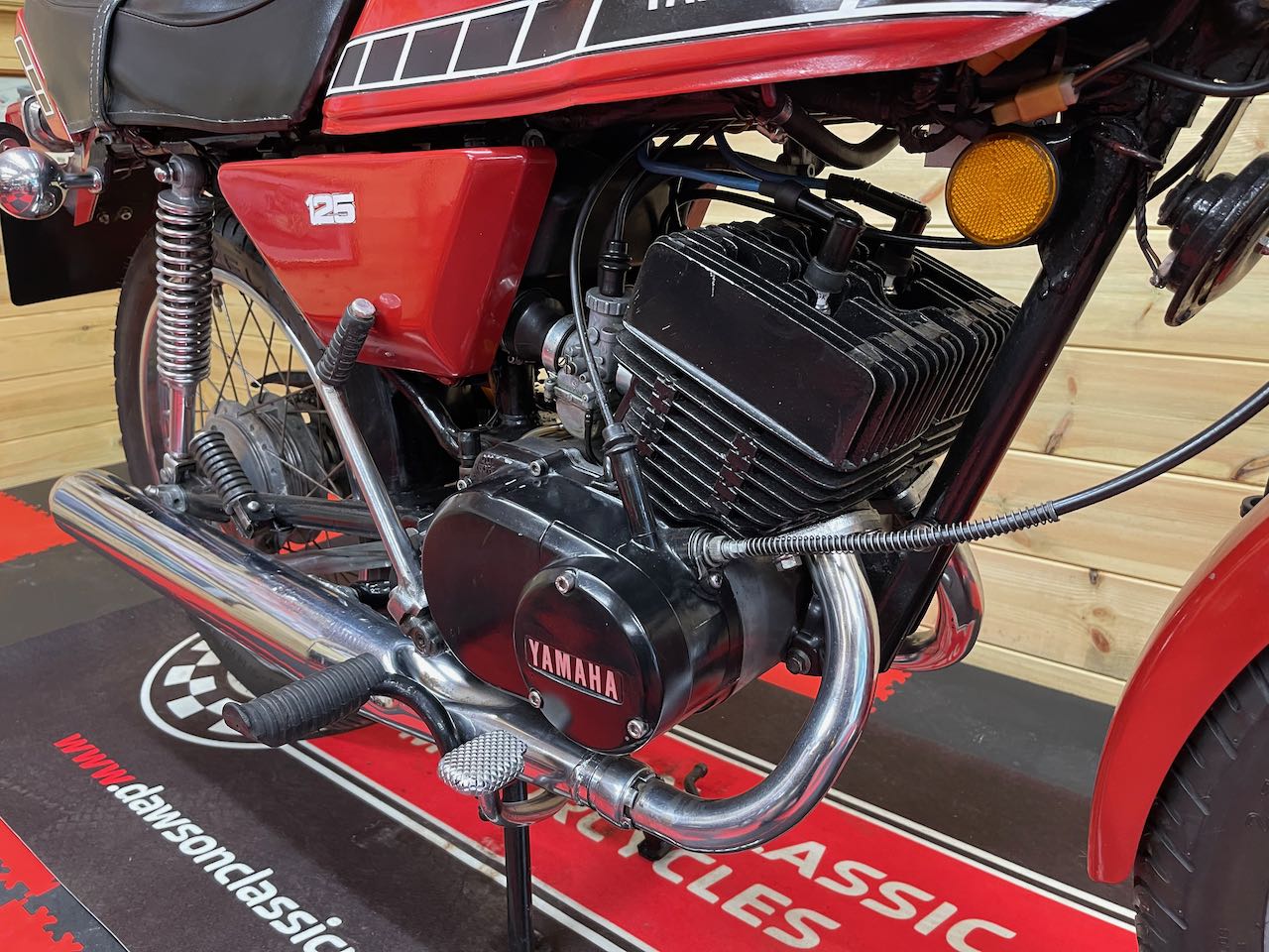 We are pleased to offer our RD125, in our opinion one of the sweetest 125 motors available! Great little rev happy twin cylinder..  First seen on UK roads back in 1974, the RD125 shared much in common with its predecessor, the Y-AS3. Featuring an air cooled twin cylinder 125cc engine, disc brake at the front, drum at the rear and a conventional steel tube frame and coffin shaped petrol tank. The RD125 was a stylish little bike with excellent performance for its size.