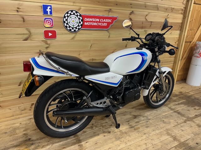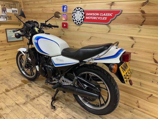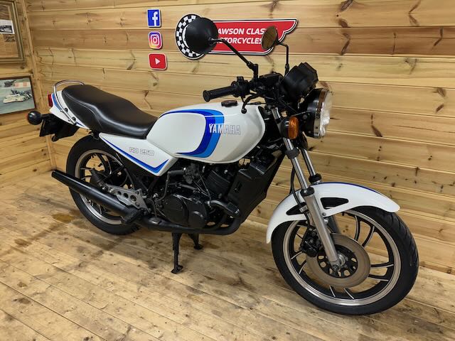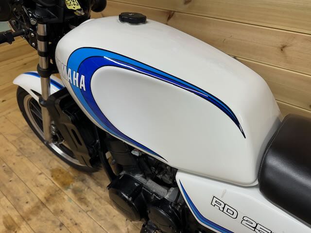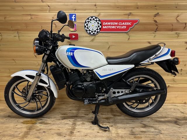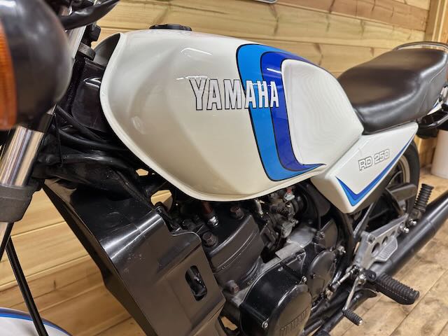 Yamaha RD250LC in white and blue (bounty) colours, a matching numbers UK bike that is in original unrestored condition with a few age related marks as can be seen in the photos and covering 19,314 miles mechanically well maintained and shod with some new rubber. As with all our classics it runs and rides excellently and has had a thorough pre sales check and serviced for the new owner.