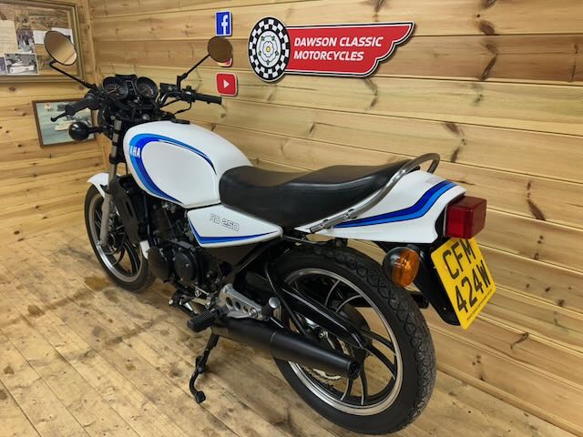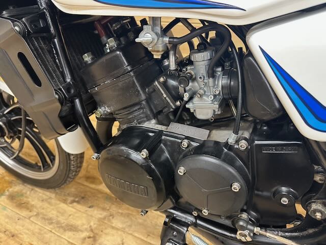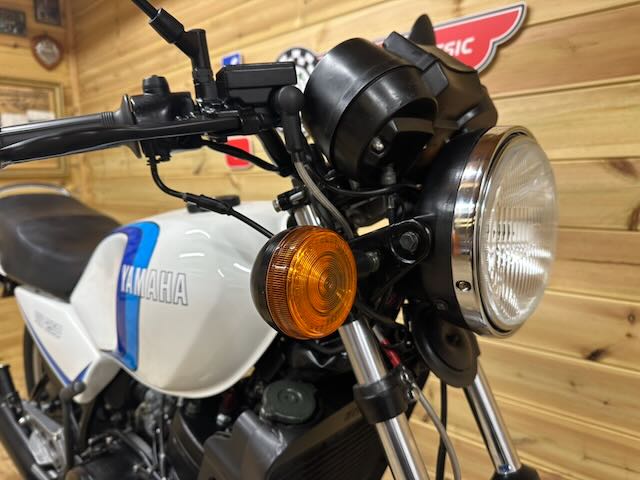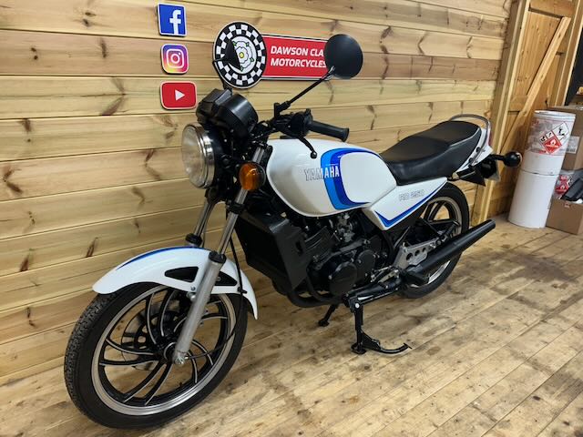 Yamaha RD250LC in white and blue (bounty) colours, a matching numbers bike that is in excellent condition as can be seen in the photos. Covering just 22,628 miles. As with all our classics it runs and rides excellently and has had a thorough pre sales check and serviced for the new owner.